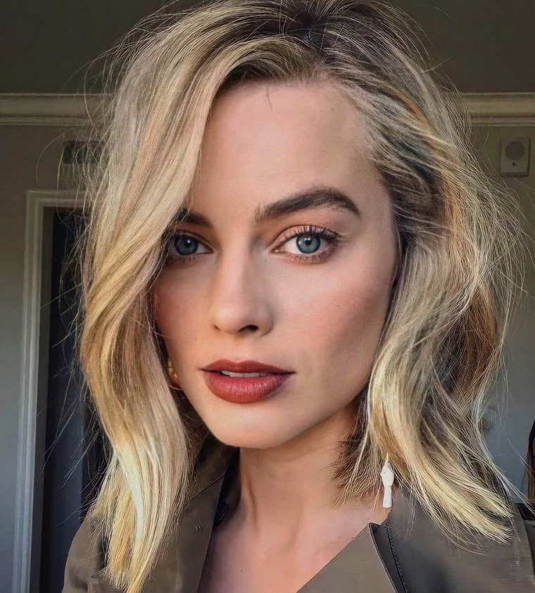 Отличный пример – окрашивание у Марго Робби. Такая техника подходит для темных волос, если хочется измениться быстро и без резкого перехода.