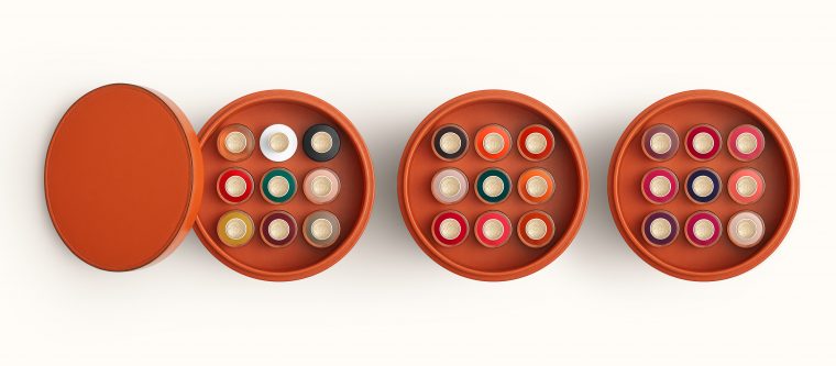Все лаки находятся в трехуровневом футляре, напоминающем мини-сумочку, выполненном из телячьей кожи фирменного оранжевого цвета.