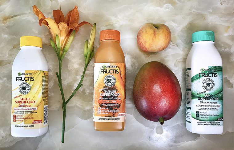 А на десерт – новые шампуни и бальзамы-ополаскиватели из первой веганской линии Fructis Superfood: восстанавливающие «Папайя», питательные «Банан» и увлажняющие «Алоэ».