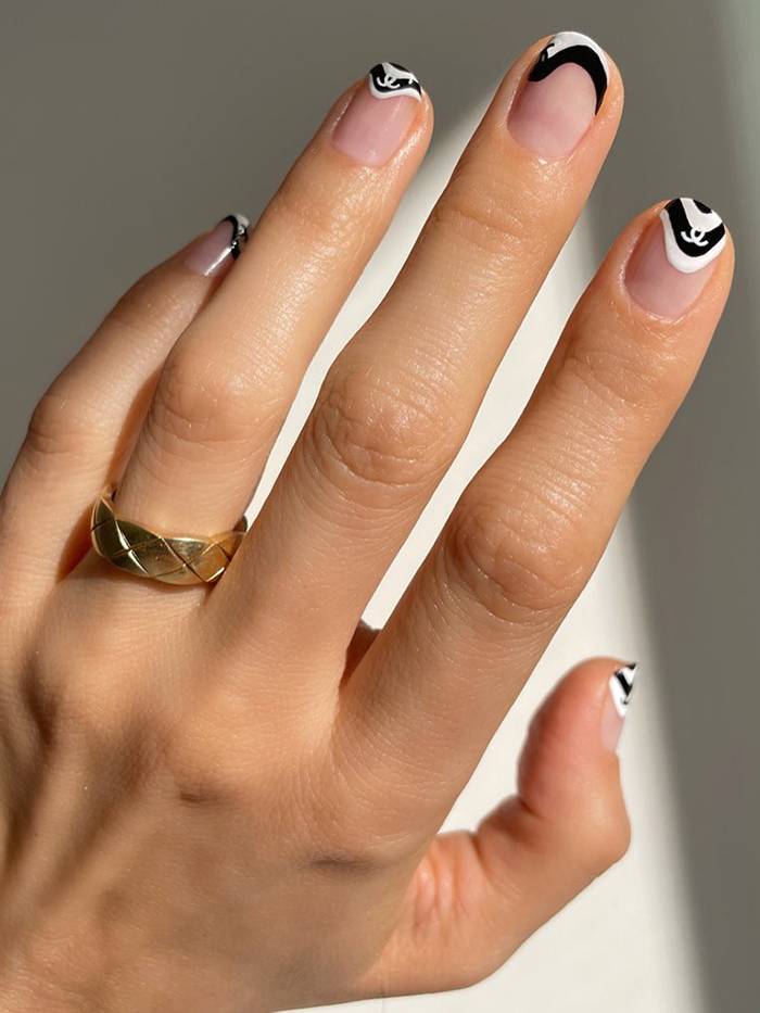 Классика френча (нюдовая основа и белый кончик ногтя в виде полумесяца) – в прошлом. Сегодня актуальны более оригинальные варианты знаменитого дизайна. Например, край ногтя выделяют не дугой, а волнистой линией, сердечком, надписью. Голливудский нейл-мастер Джин Сун Чой и вовсе для показа весенней коллекции дизайнера Питера До сместила дугу на боковую часть ногтя и покрасила ее черным лаком.