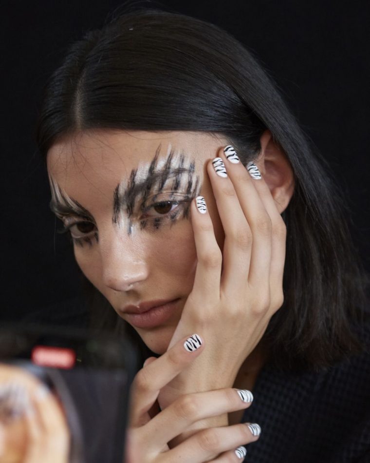 Тигр – символ 2022 года правит бал не только в модной, но и в бьюти-индустрии. В нейл-дизайне используют тигровый, леопардовый, змеиный орнаменты. Например, на ногтях моделей на показе Rodarte был выведен узор под зебру. Необязательно украшать животным принтом каждый палец, одного-двух будет достаточно, для того чтобы показать вашу осведомленность в трендах.
