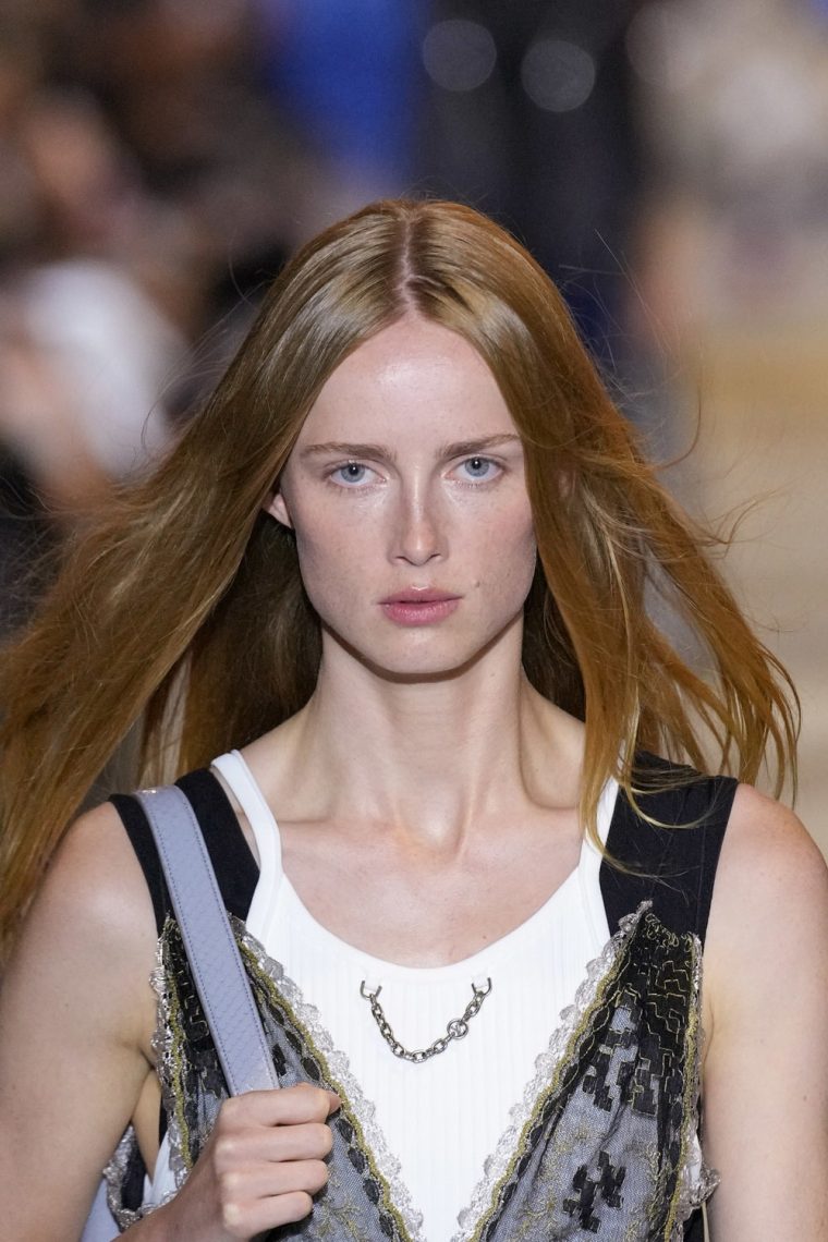 Также добавьте немного жидкого хайлайтера, блеска на губы и веки, чтобы получился макияж точь-в-точь, как на показе Blumarine.
