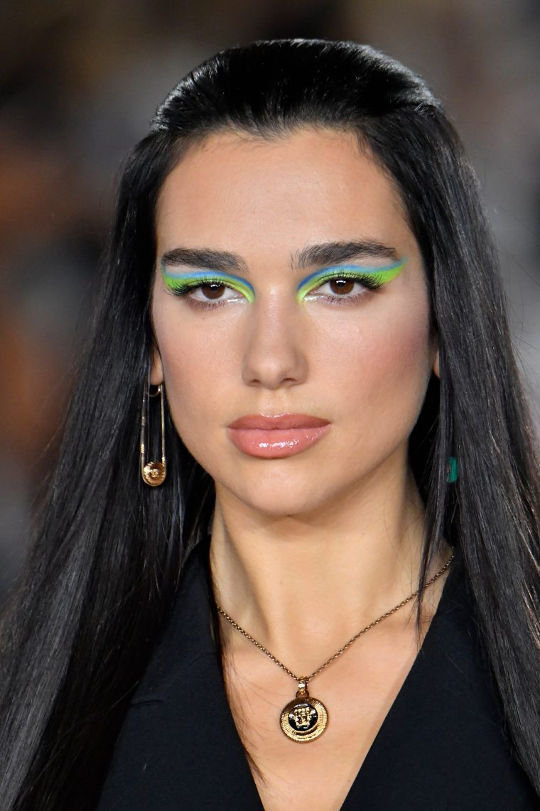 На показе Versace визажист Пэт Макграт нарисовала голубые и салатовые стрелки, на шоу Anna Sui – смоки оттенка фуксии, а Джиджи Хадид, например, любит выделять внутренний уголок глаза подводкой оранжевого цвета.