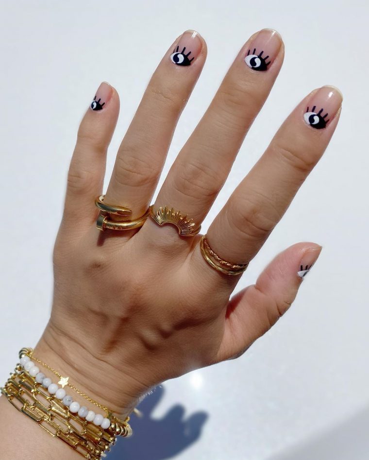 Любимый маникюрДиты фон Тиз и Леди Гаги. Ногтевую пластину оставляют прозрачной, а «лунка» становится центральным элементом дизайна.Ее украшают стразами, рисунками (в виде глаз или радуги), выделяют ярким цветом или делают другой формы, например, треугольной.