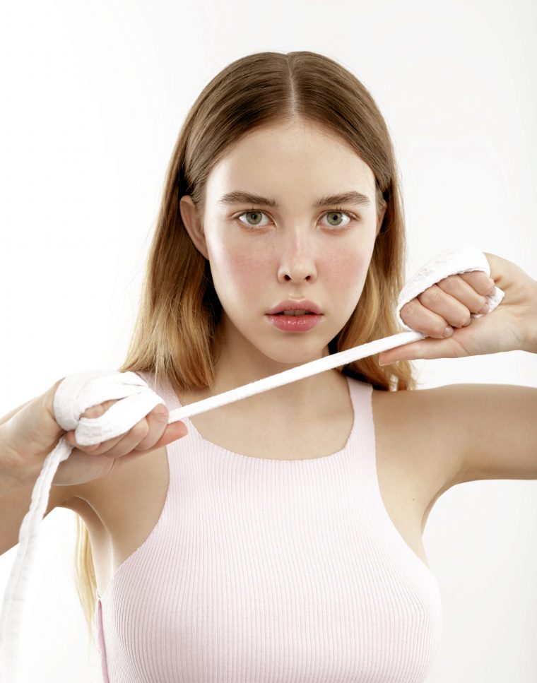 Тональный крем Neo Nude, 2; румяна A-Blush, 50; хайлайтер A-Highlight, 11; бальзам для губ Ecstasy Balm, 2; все Armani Beauty; топ, WOS, брюки, Puma