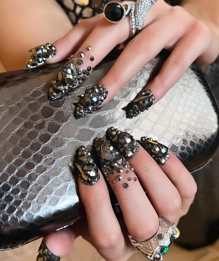 Если «Бриджертоны» задали тренд на корсеты, то героини сериала «Эйфория» – на блестящий маникюр. Мастер проекта Натали Минерва называет себя не иначе, как «нейл-художницей» и вытворяет на ногтях актрис Алекс Деми, Зендаи и Сидни Суини настоящие сверкающие шедевры с шиммером, блестками и стразами.