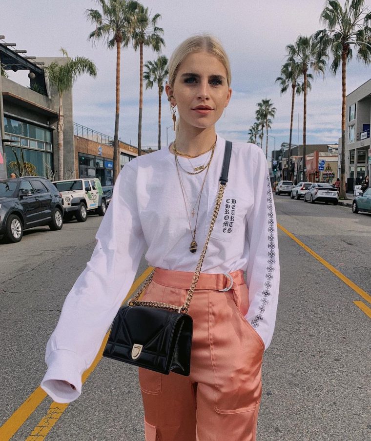 Поступиться комфортом ради модного образа? На такие жертвы it girls сегодняшнего дня не готовы. Они обязательно придумают, как совместить эти идеалы. Спасибо Каролине Даур за идею носить безразмерный свитшот с широкими шелковыми брюками – выглядит эффектно, и к тому же комфортно, как в пижаме.