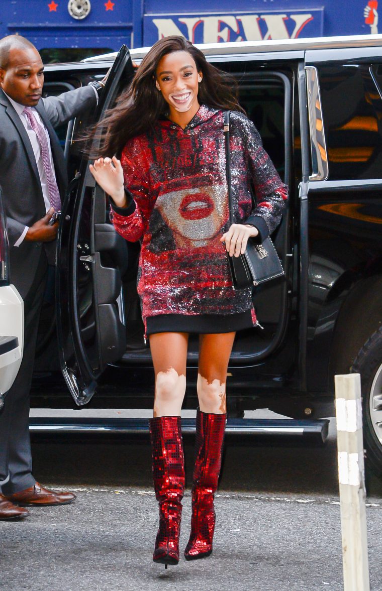 Свитшот вместо коктейльного платья? Почему бы нет! Это любимое сочетание Арианы Гранде. А Винни Харлоу надела свитшот с ботфортами на красную дорожку. Следуя ее примеру, выбирайте для вечерних мероприятий удлиненный свитшот, расшитый пайетками, стразами или в ярких узорах.