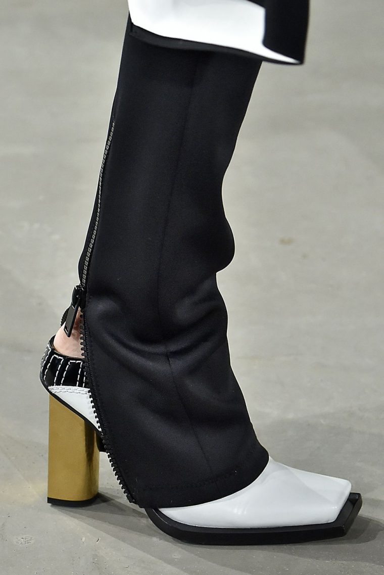 Этот тренд из «нулевых» планирует задержаться еще на один сезон. Обратите внимание на сапоги и ботильоны с таким мыском. Он может быть выполнен из контрастного материала, например, как у Proenza Schouler – с металлической деталью.