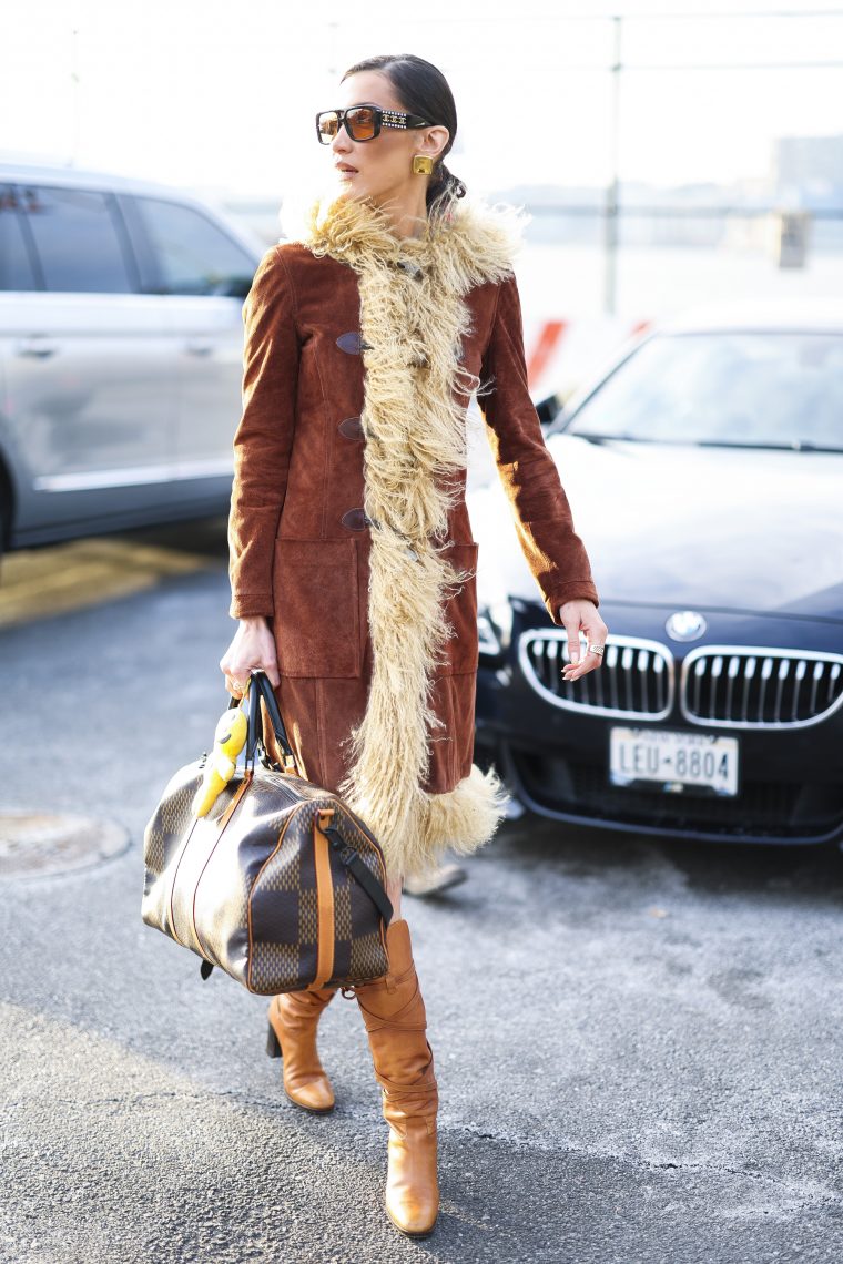 Дубленки с оторочкой сразу же примерили и главные модницы планеты во главе с Беллой Хадид и Эмили Ратайковски.