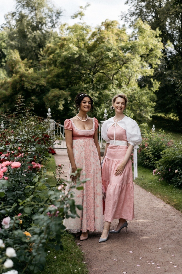 Дресс-код мероприятия – нежные пастельные оттенки и 19 век. Московский дизайнер Мария Алексеева специально для гостей вечера создала коллекцию платьев в стиле ампир.