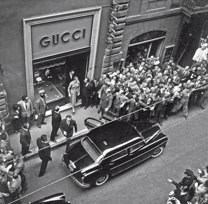 Родольфо Гуччи, один из сыновей основателя бренда, решил, что не существует дизайна, достойного красавицы принцессы, и заказал художнику Витторио Аккорнеро рисунок в его фирменной манере – тщательное, почти энциклопедическое изображение цветов с обводкой черной тушью.