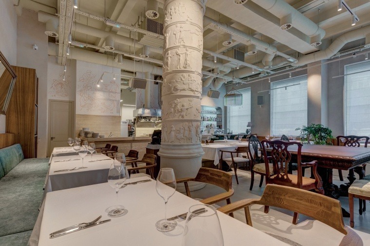 Дегустируя бриошь с крабом, крудо из креветок карабинерос, тартар из говядины, пинчос и другие деликатесы в стиле «simple yet chic», гости с упоением фотографировались на фоне белой античной колонны Авроры, ключевой детали интерьера.