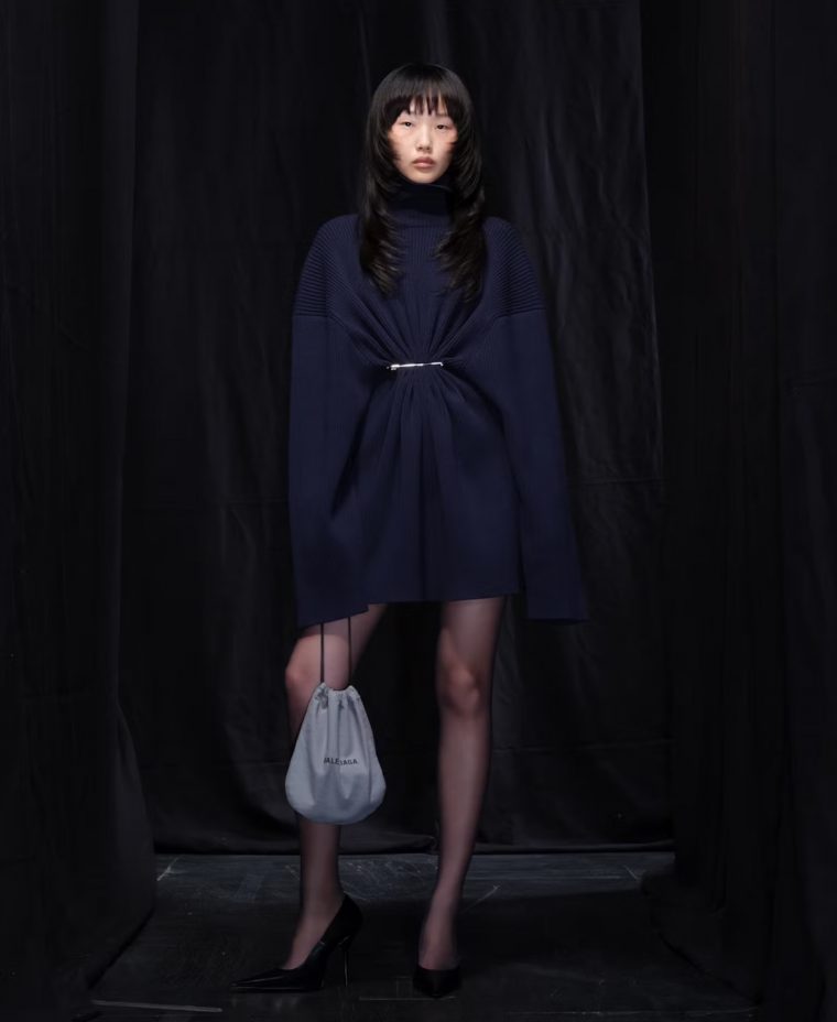 На показах Balenciaga, Prada и Hermes платье-свитер имитировало водолазку – гладкий плотный или тонкий трикотаж, высокий ворот, рукава на резинке.