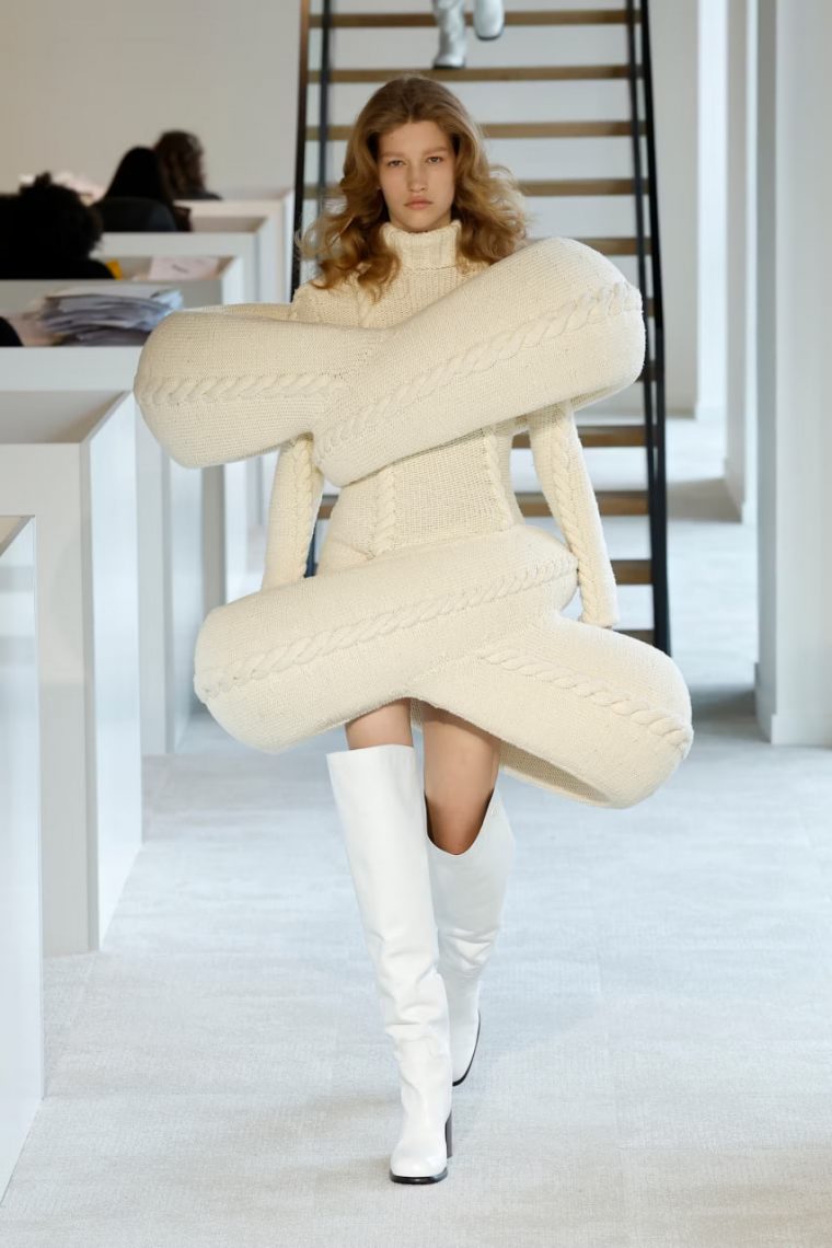 На показе Comme des Garsons модели носили облегающие вязаные платья с огромными скульптурными деталями.