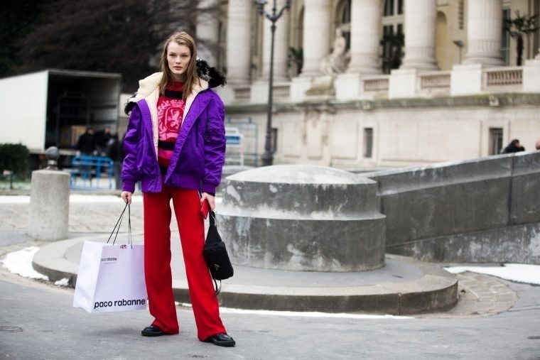 - Яркие цвета – самые модные: красный, оранжевый, розовый. Они прекрасно сочетаются и с другими яркими оттенками, и с нейтральными черным или бежевым.