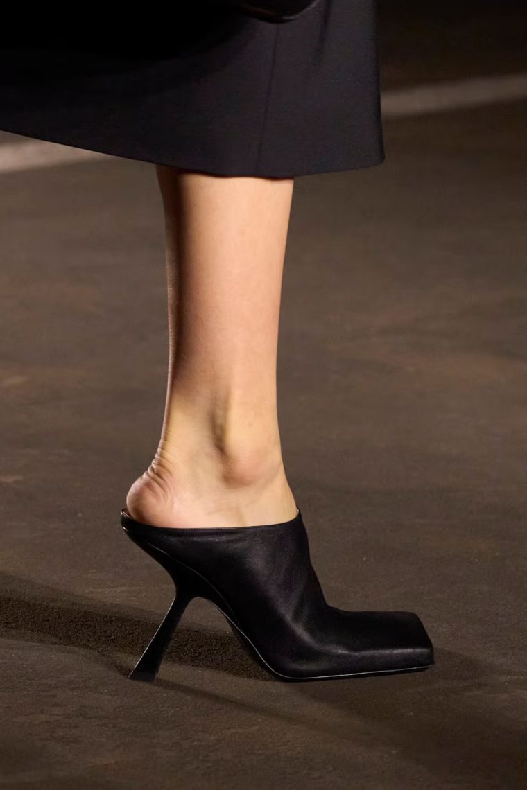 Независимо от того, выбираете ли вы ботильоны или мюли, как на показе Mugler, лодочки, как у Chanel, лоферы на танкетке, как у Acne Studios, или балетки, как у Givenchy, отдайте предпочтение обуви с квадратными носами. Акцент, который за секунды сделает образ остромодным!
