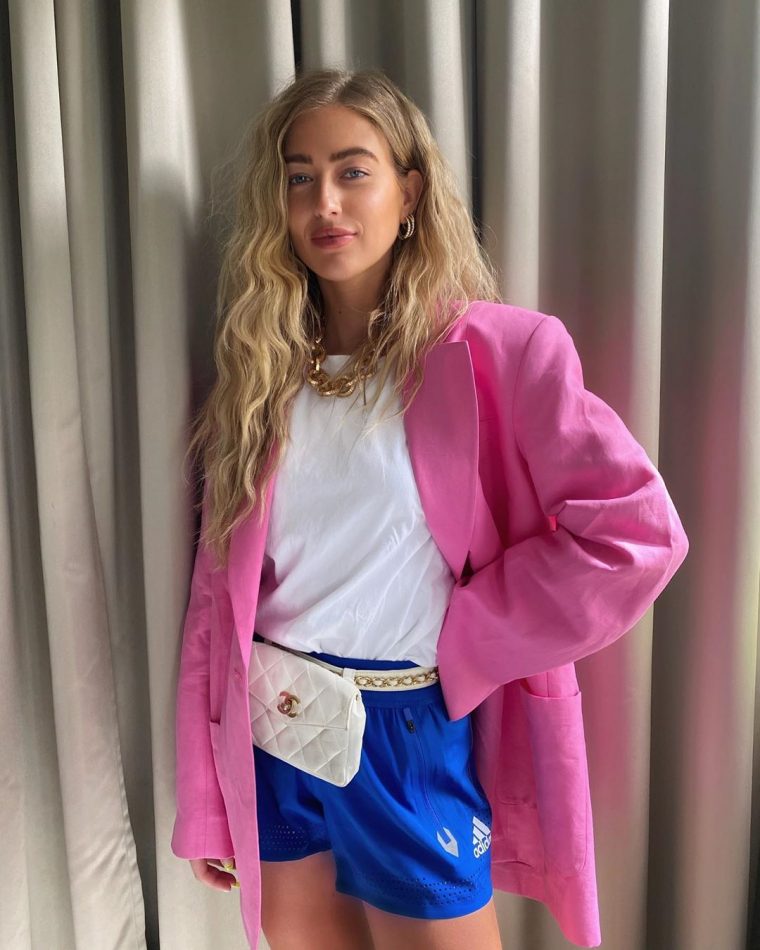 Объемный жакет, словно с мужского плеча, вот уже несколько сезонов успешно заменяет нам кардиган, джинсовую куртку и даже плащ. Это лето не исключение. Носите жакет поверх худи, подпоясав ремнем или надевайте на голое тело с бра, демонстрируя свой накачанный за время карантина пресс.