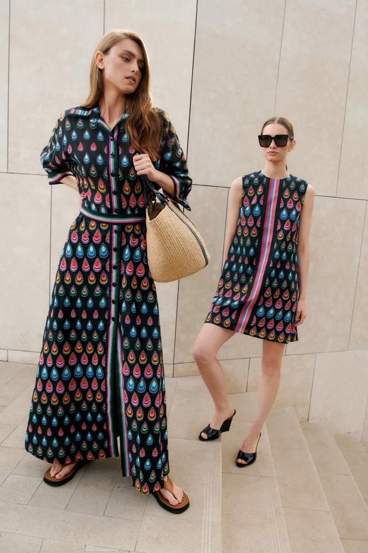 Многие вещи украшены авторскими принтами Яниной – белый горох на черном фоне, тропические и цветочные узоры и, конечно, #yaninagirls – графические сюжеты о стиле жизни, где героинями становятся те, кто носит вещи бренда.