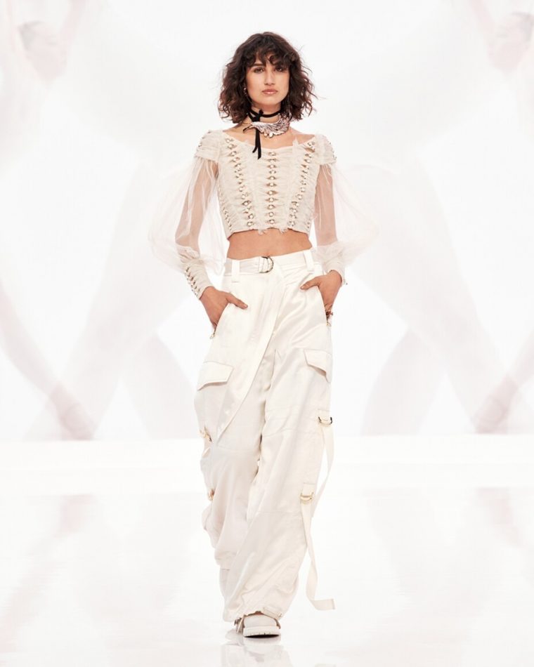 Носить карго в 2022-м также следует с вещами, противоположными по стилю и настроению, – не с худи оверсайз и грубыми ботинками, а с соблазнительным корсетом и туфлями на каблуке, как недавно продемонстрировала Зендая, отправляясь на шоу Джимми Киммела.