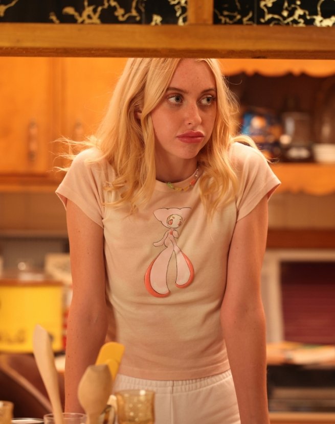 Сегодня наивные футболки, обнажающие пупок, вернулись в наши гардеробы также благодаря популярному сериалу. На этот раз, спасибо «Эйфории». Его главные героини – Мэдди (Алекса Деми), Кэсси (Сидни Суини), Джулс (Хантер Шафер) и Кэт (Барби Феррейра) на протяжении всего шоу носят футболки в стиле ретро.