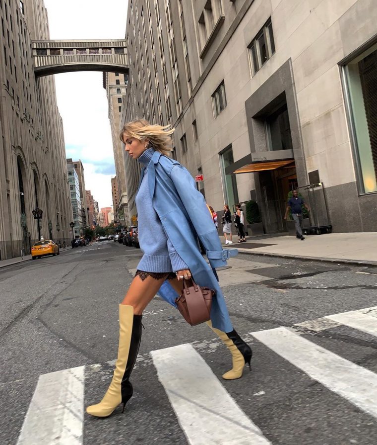 Но самый писк, когда сапоги или ботильоны дизайнеры «режут» цветом пополам – по вертикали или наискосок, как на показах Valentino, Jacquemus, Proenza Schouler. Во-первых, получается настоящая оптическая иллюзия: с первого взгляда сложно понять, какого именно цвета ваша обувь. А во-вторых, такая пара моментально привлекает внимание, ведь выглядит как произведение современного искусства. И этим охотно пользуются героини стритстайл-хроник – берем пример!