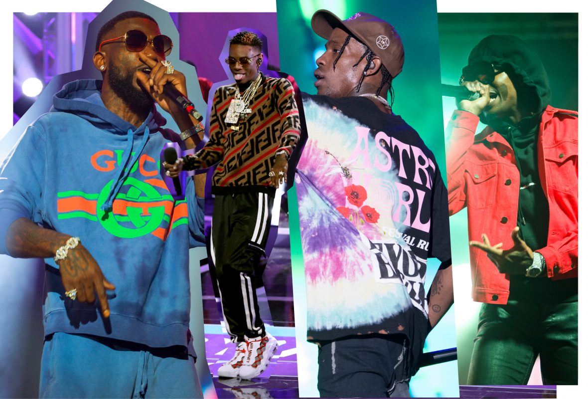 Тренировочные штаны и шубы оверсайз, гигантские меховые воротники и высоченные платформы, массивные золотые цепи и бейсболки: рэперы любят выделяться, без тени смущения берут самые экстравагантные вещи из новых коллекций и смешивают их друг с другом в одном луке, обожают яркие цвета и забавные рисунки.