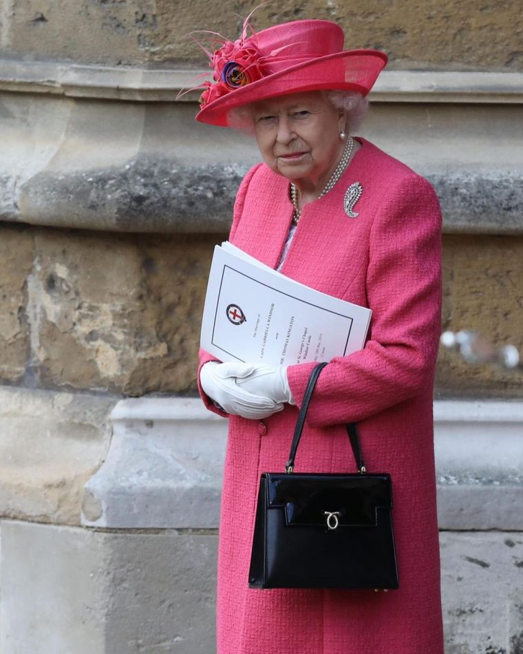 Любимая модель Елизаветы – строгий жесткий тоут-сундучок Traviata. С такой она появляется на большинстве официальных мероприятий. Например, с белой сумкой она была свадьбе принца Уильяма и Кейт Миддлтон, а с черной лакированной – на показе Richard Quinn и встрече с Дональдом Трампом.