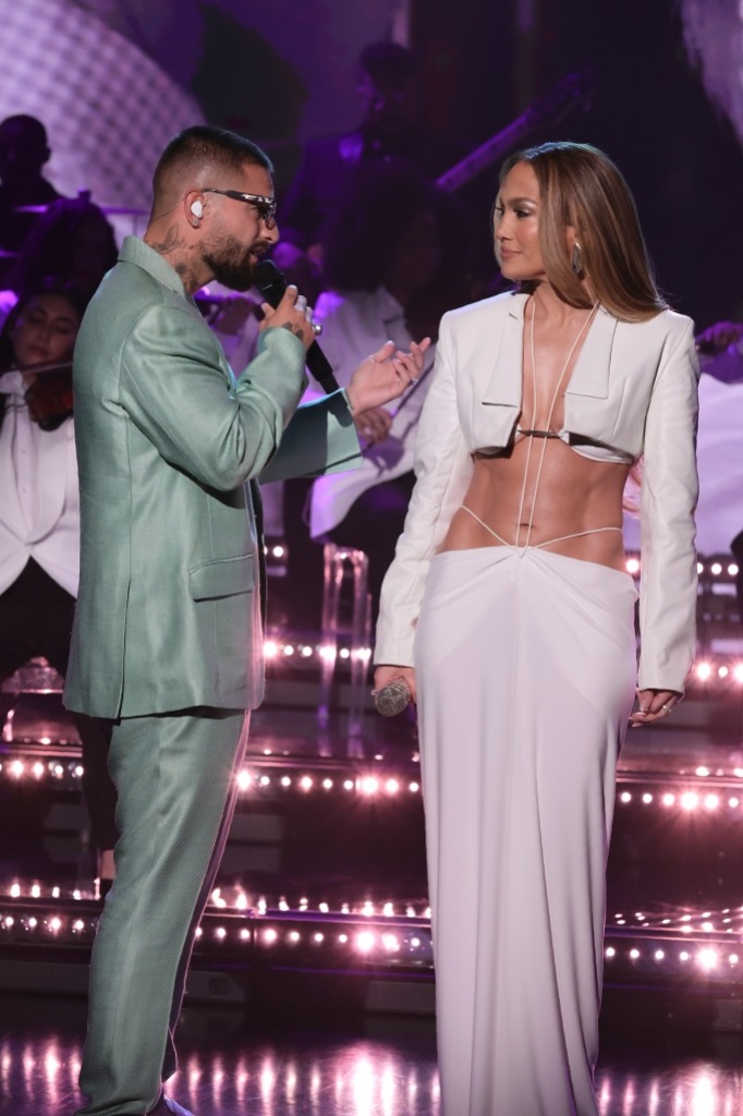Вот и Джей Ло доказывает: скромность юбки макси весьма обманчива. Так, для участия в телешоу Джимми Фэллона она выбрала белую юбку, облегающую бедра, как вторая кожа, которую надела с укороченным жакетом и топом.