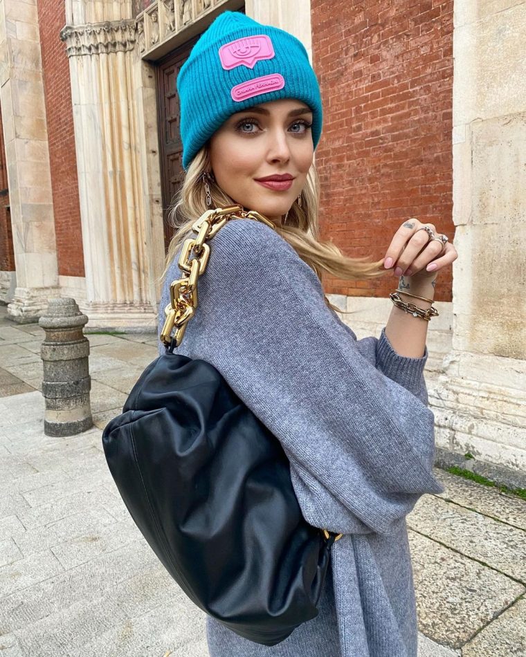 Сочетайте яркую верхнюю одежду с шапкой приглушенных тонов и, наоборот, – к черному пуховику подберите модель неонового оттенка, как это делают модницы Кьяра Ферраньи и Каролина Даур.