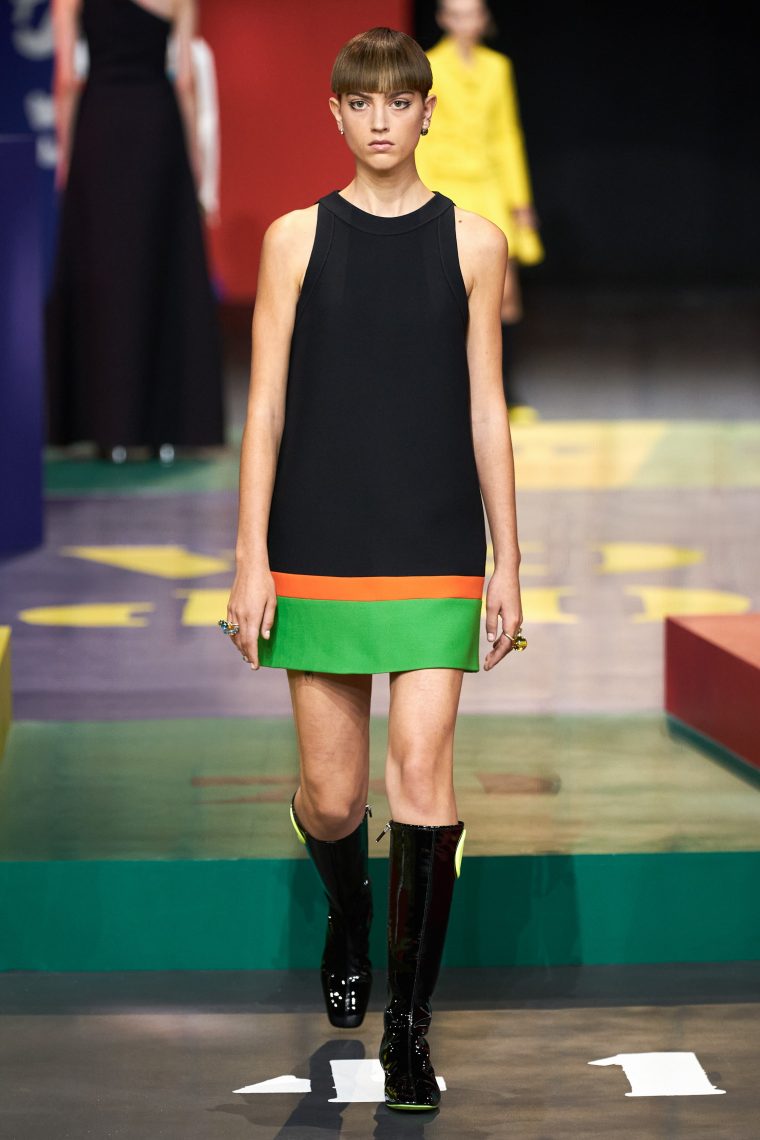 Если эстетика 1990-х и 2000-х вам несколько надоела, можно перенестись еще дальше – в элегантные 1960-е. Костюмы-двойки ярких цветов, косынки и туфли «Мэри Джейн», виниловые плащи и леопардовый принт – все это снова мы будем носить. Особое внимание стоит уделить платью-трапеции – это будущий хит, судя по коллекциям Dior, Carolina Herrera и Versace.