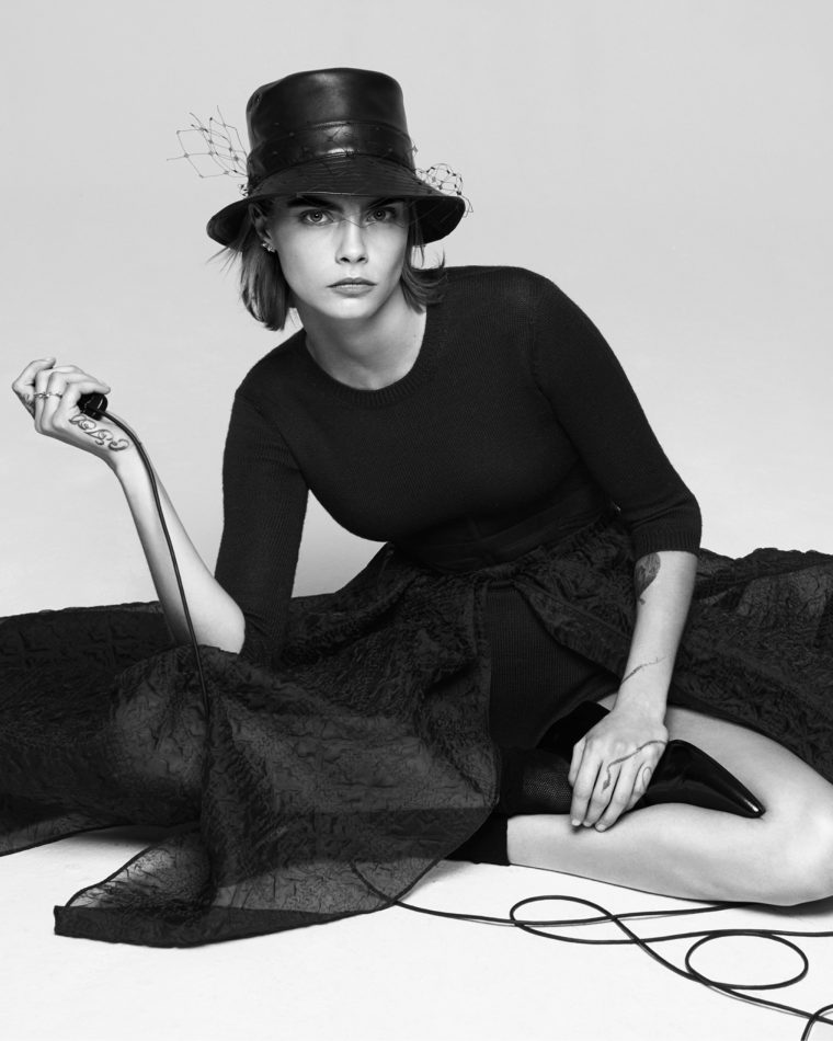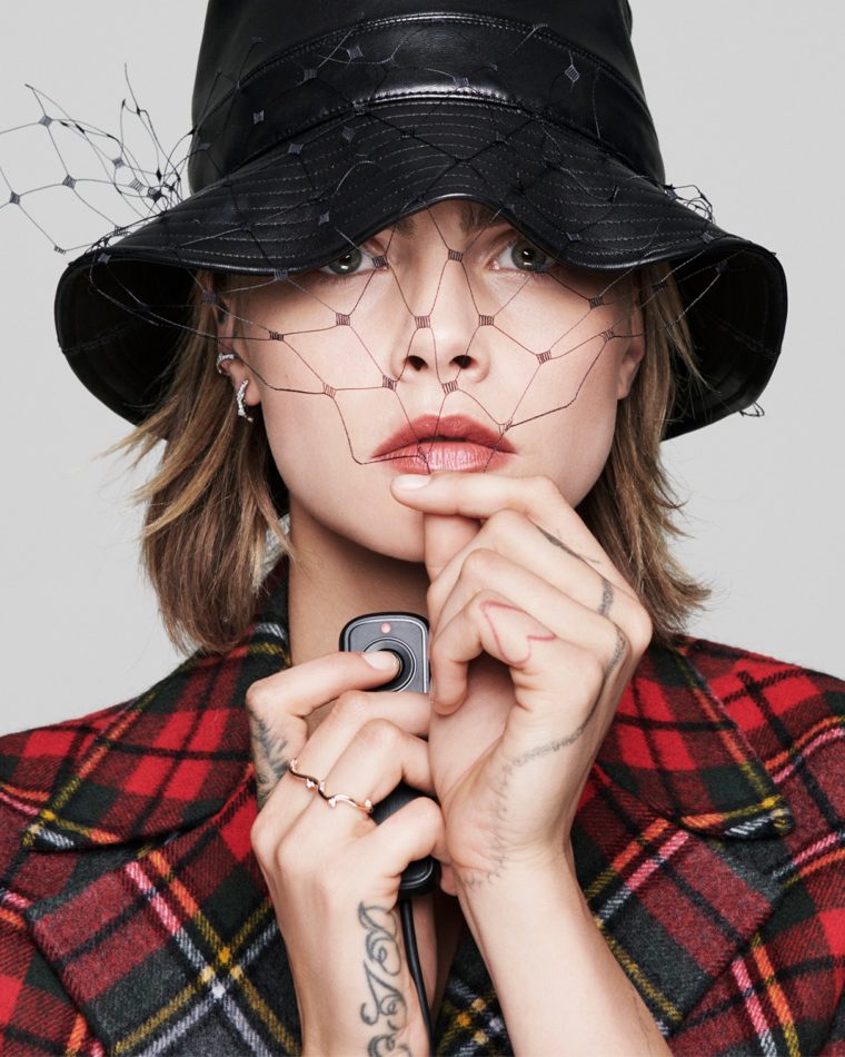 Специально для Dior Кара сняла серию автопортретов: на них супермодель танцует, следуя своему главному кредо – никогда не изменять свободе и себе. Оно же отчетливо просматривается и в образах: строгие клетчатые вещи из осенне-зимней коллекции Dior супермодель перемешала в небрежном лондонском стиле – шарф надела как пончо, а платье-бюстье и клетчатый костюм – с игривой кожаной панамой с вуалью.