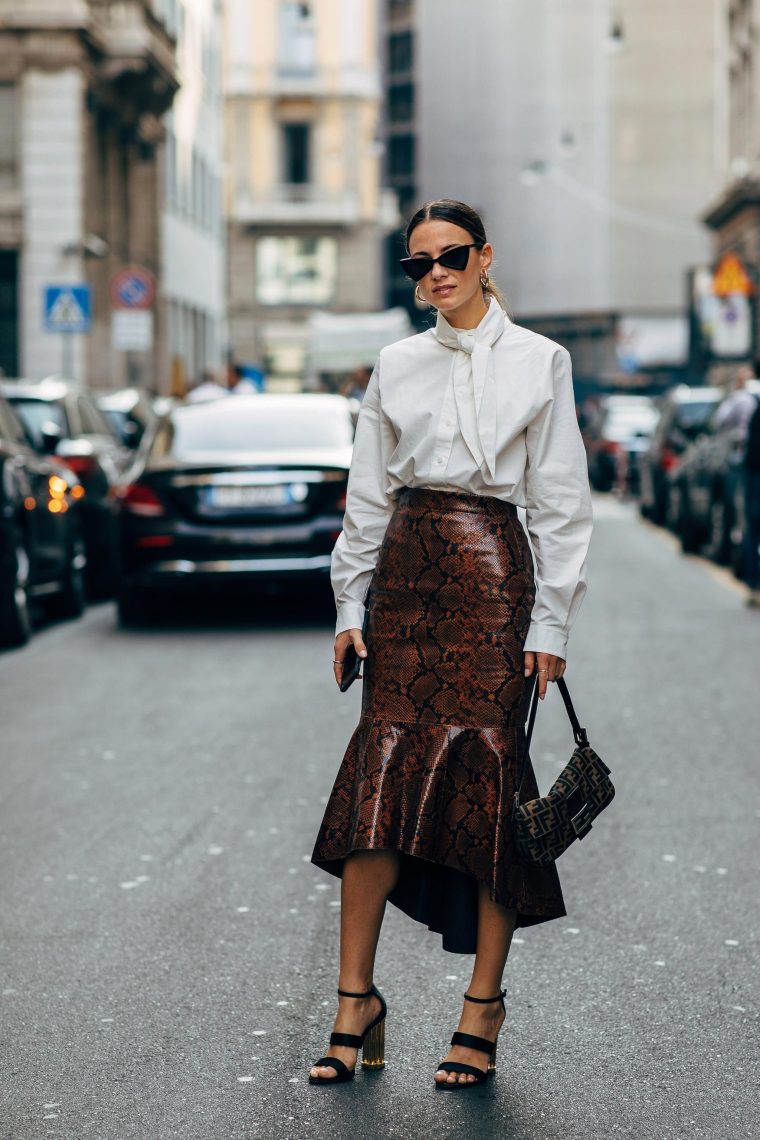 Это раньше кожаные юбки были исключительно черными и ассоциировались с рокерами, готами или стилистикой фильмов нуар. В этом сезоне юбки шьют из кожи всех цветов радуги, а значит, они впишутся в самые актуальные тренды!