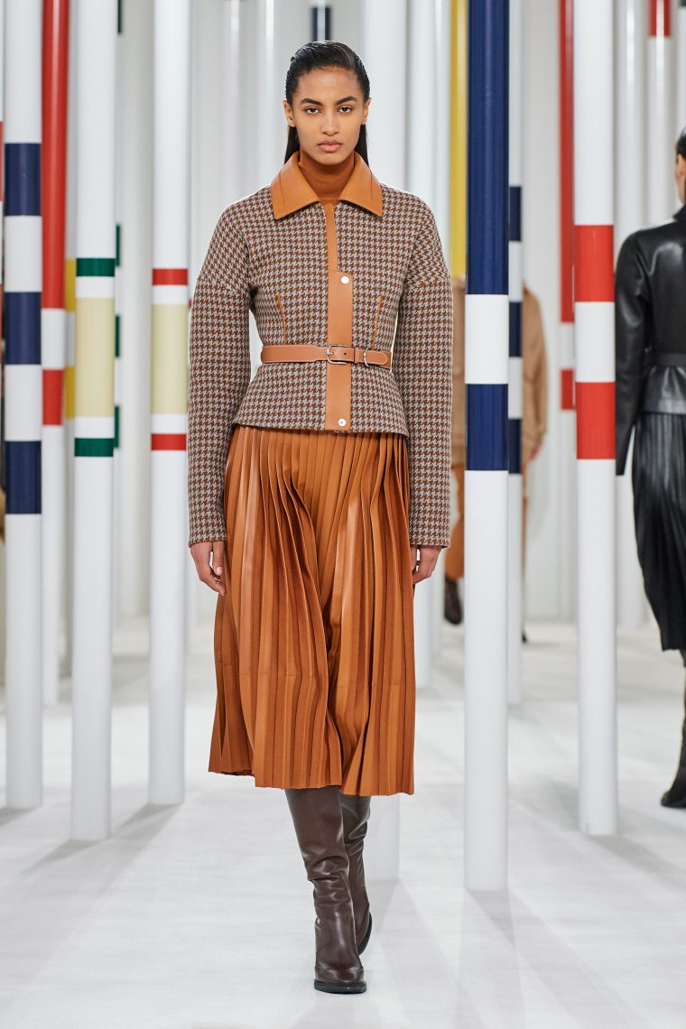 Хотите собрать в одном образе все тренды сезона? Надевайте юбку со свитером, но не обычным оверсайз, а c объемными рукавами, как любили в 1980-х. К такому женственному образу идеально подойдут элегантные аксессуары: перчатки выше локтя и ботфорты или ботильоны на каблуке.