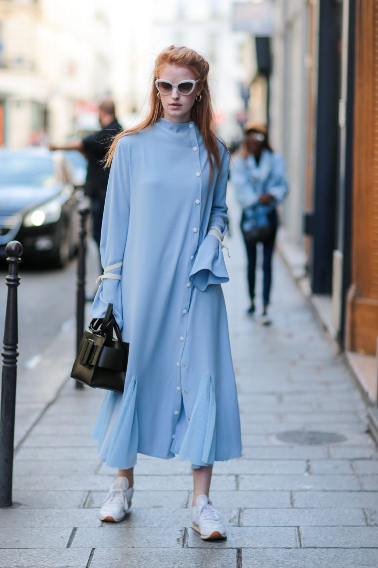 Но летом можно запросто снизить градус формальности и носить платье-рубашку по-хулигански – с яркими кроссовками!