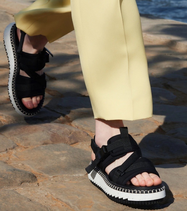 Актуальны модели на липучках с массивной подошвой с протектором, которые вы бы наверняка выбрали, собираясь в поход на пару дней. Но нет, подобные спортивные сандалии отлично себя чувствуют и в городе, как альтернатива удобным кроссовкам в жару.