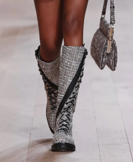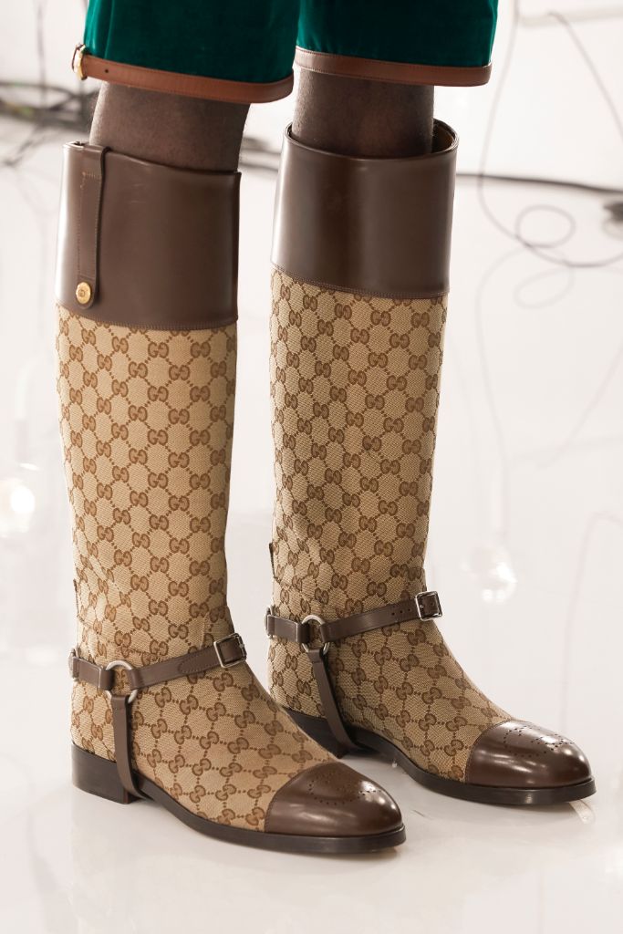 Плоская подошва, высокое голенище, круглый мыс и декоративные элементы в виде тонких ремешков и петель – такими видят современные жокейские сапоги Chloé, Chanel, Gucci, Fendi, Celine.