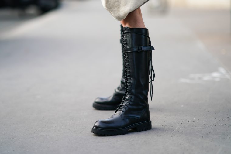 Рокерские или армейские ботинки стали вдохновением сезона. И правда, практичнее пары на осень не придумаешь: подошва на протекторе не скользит, длина до середины икры надежно защищает от брызг из луж, а шнуровка – декоративная, на самом деле они на молнии и надеваются в два счета.