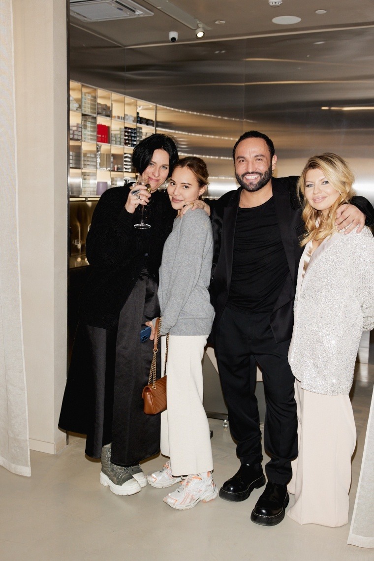 Тем временем, на Поварской гремела музыка и через край лилось шампанское – любимец it girls визажист Сердар Камбаров открыл именной салон Serdar Kambarov Studio. Виновник торжества встречал своих муз в атласном смокинге Balenciaga (на первый взгляд показалось, что он вывернут на изнанку).