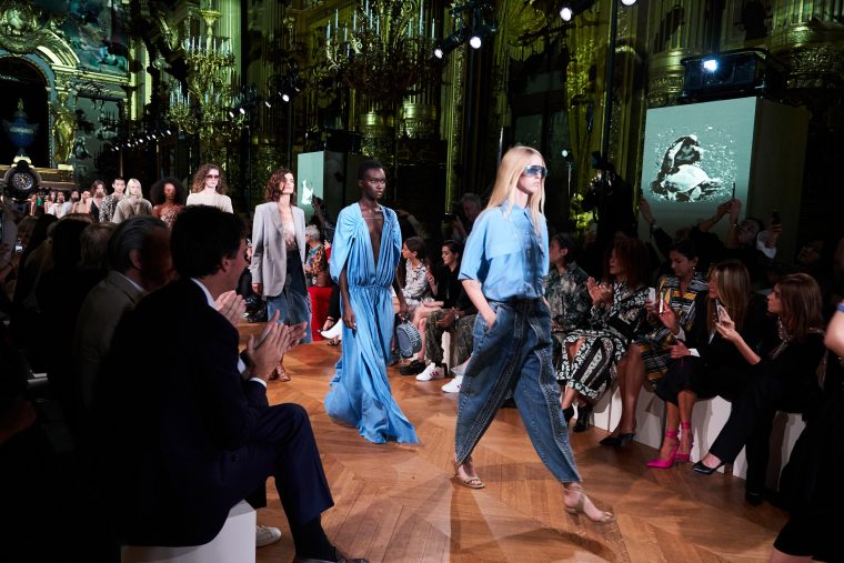 А главная экоактивистка мира моды Стелла Маккартни (она первой из люксовых брендов отказалась от использования натурального меха и кожи) подчеркнула тему сохранения дикой природы тем, что во время шоу на стены Оперы Гарнье проецировались кадры совокупляющихся животных.