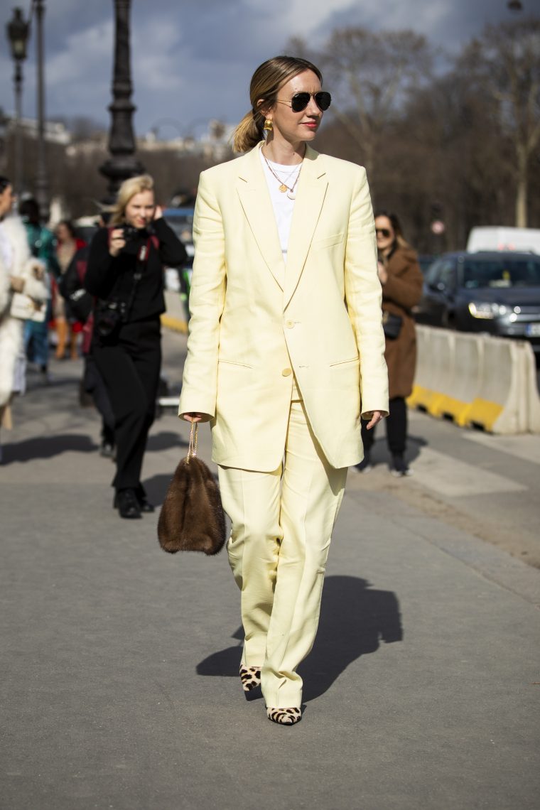 Лимонный выигрышно смотрится в легком трикотаже, хлопке, тончайшем шелке и даже дениме. Брючные костюмы оверсайз, тренчи, твидовые жакеты – в этом оттенке любая вещь выглядит свежо и лаконично.