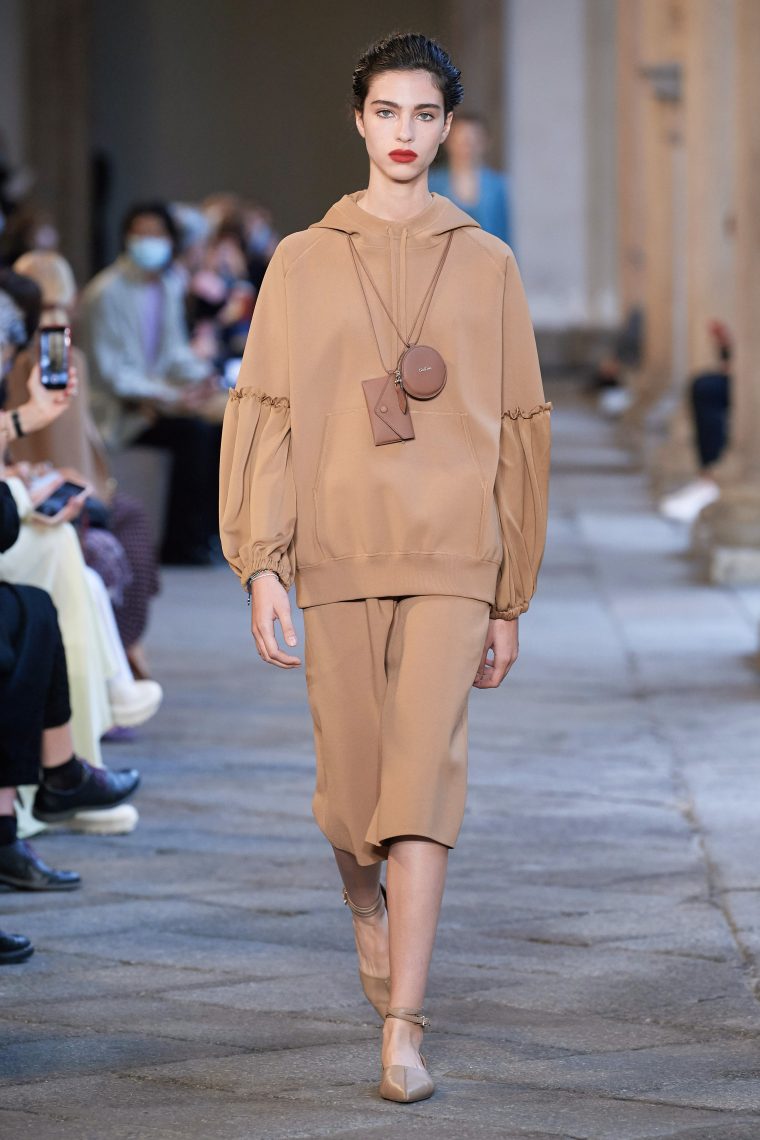 Спортшик с триумфом вернулся в список трендов. Худи, спортивные штаны с лампасами, кроп-топы взлетели в рейтингах популярности и присутствовали практически в каждой коллекции.