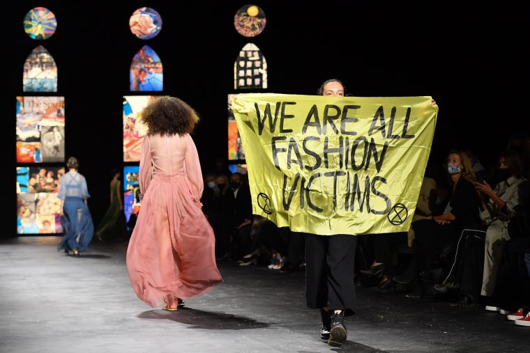 Расслабленные жакеты, уютные анораки, летящие платья. Не обошлось без сюрпризов: в середине шоу на импровизированный подиум вышла девушка в маске с ярко-желтым плакатом We Are All Fashion Victims («Мы все жертвы моды»).