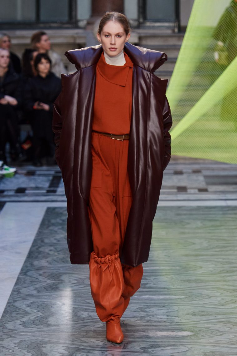 Эра укороченных пуховиков, кажется, скоро канет в Лету. Им на смену приходят пуховики удлиненные, чуть ниже колена. Такие были на шоу Hermès, Ermanno Sсervino, Burberry и Erdem.