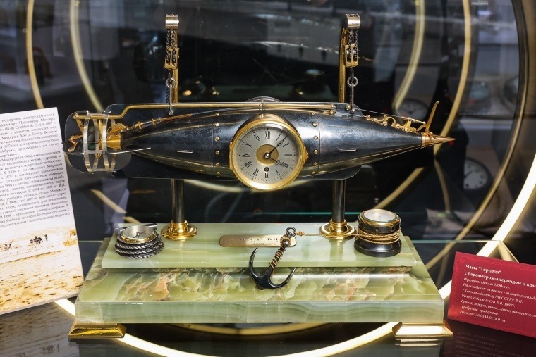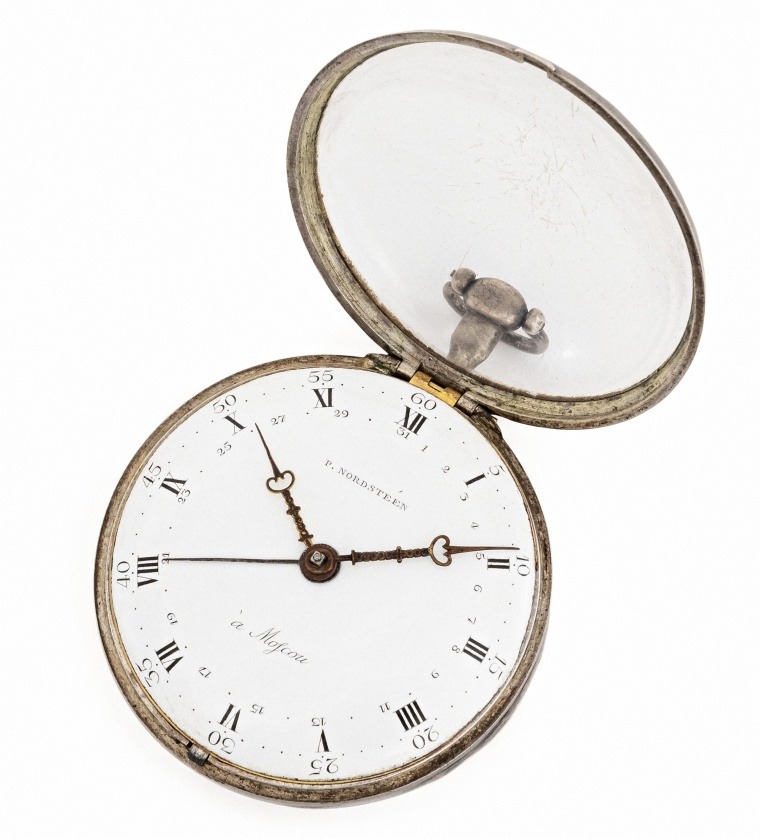 Например, часы, изготовленные в 1794 году фабрикой Петра Нордштейна – одним из первых часовых производств, учрежденных по указу Екатерины II, часы торговых домов Павла Буре, Генри Мозера, Вильяма Габю и других часовых компаний конца XIX – начала XX веков.