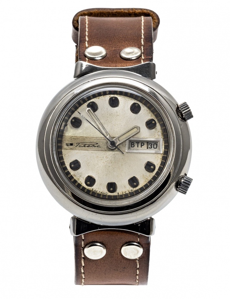 Гордость экспозиции – сложнейшие часы «Ракета 3032» с двойным календарем, будильником и водозащитой до 200 м производства середина 1970-х.
