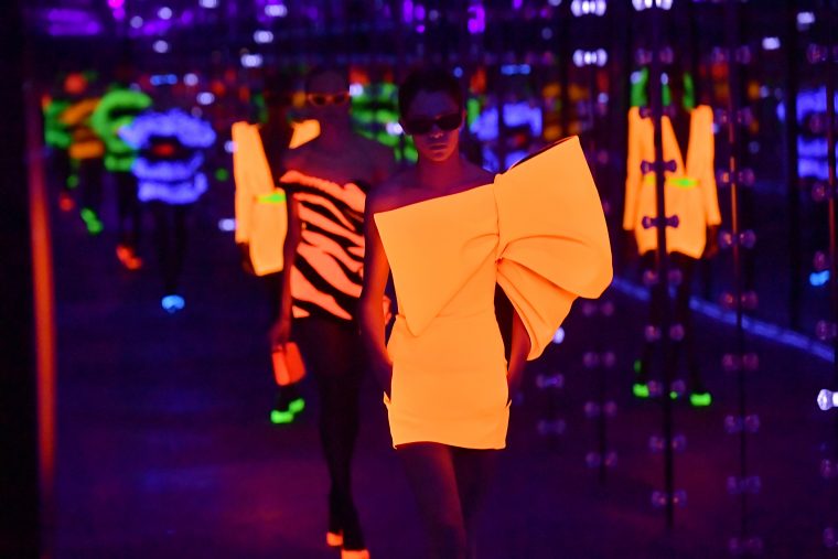 Показ, больше напоминающий рейв-вечеринку, задал новый тренд. Теперь если вы хотите привлечь внимание всех вокруг – выбирайте не маленькое черное платье, а неоновое!