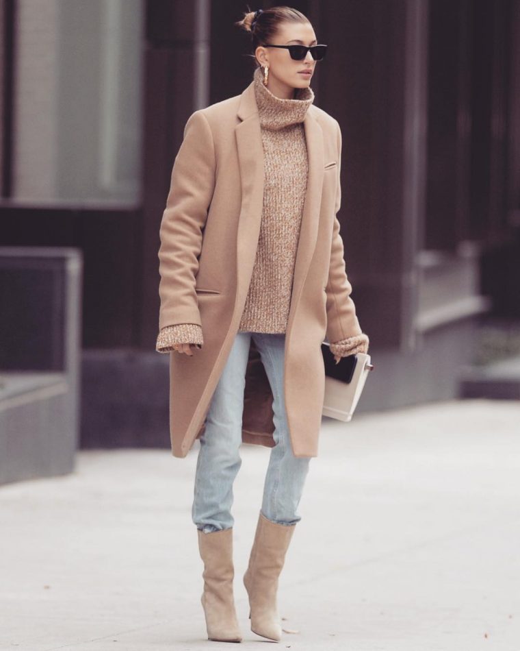 Этот тренд уже вовсю исследуют самые популярные героини стритстайл-хроник – Хейли Болдуин-Бибер, Рози Хантингтон-Уайтли и Каролина Даур. Считается, что песочная гамма больше подходит для лета. Тем более интересно наблюдать, как модницы носят его зимой.