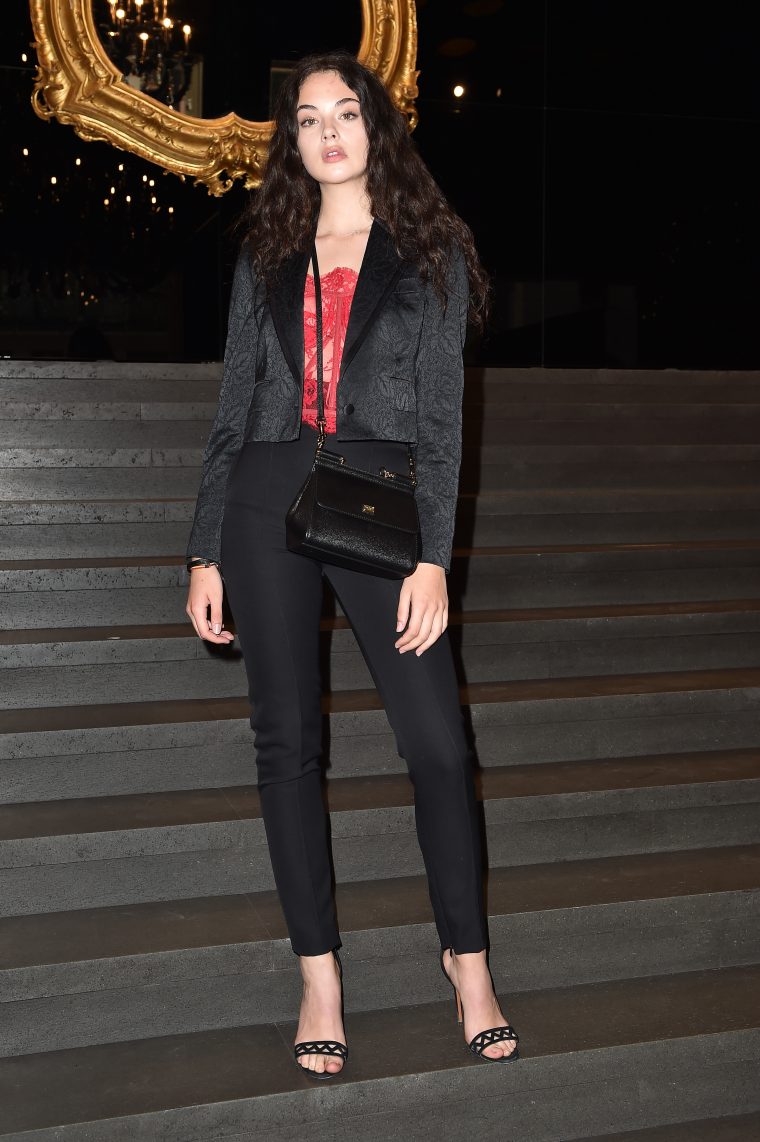 Первый выход Девы в свет состоялся прошлой осенью, на показе Dolce & Gabbana. Для своего дебюта Дева выбрала наряд, по ее признанию, «похожий на мамин»: узкие черные брюки, укороченный жаккардовый жакет и вместо блузки – алый корсет.