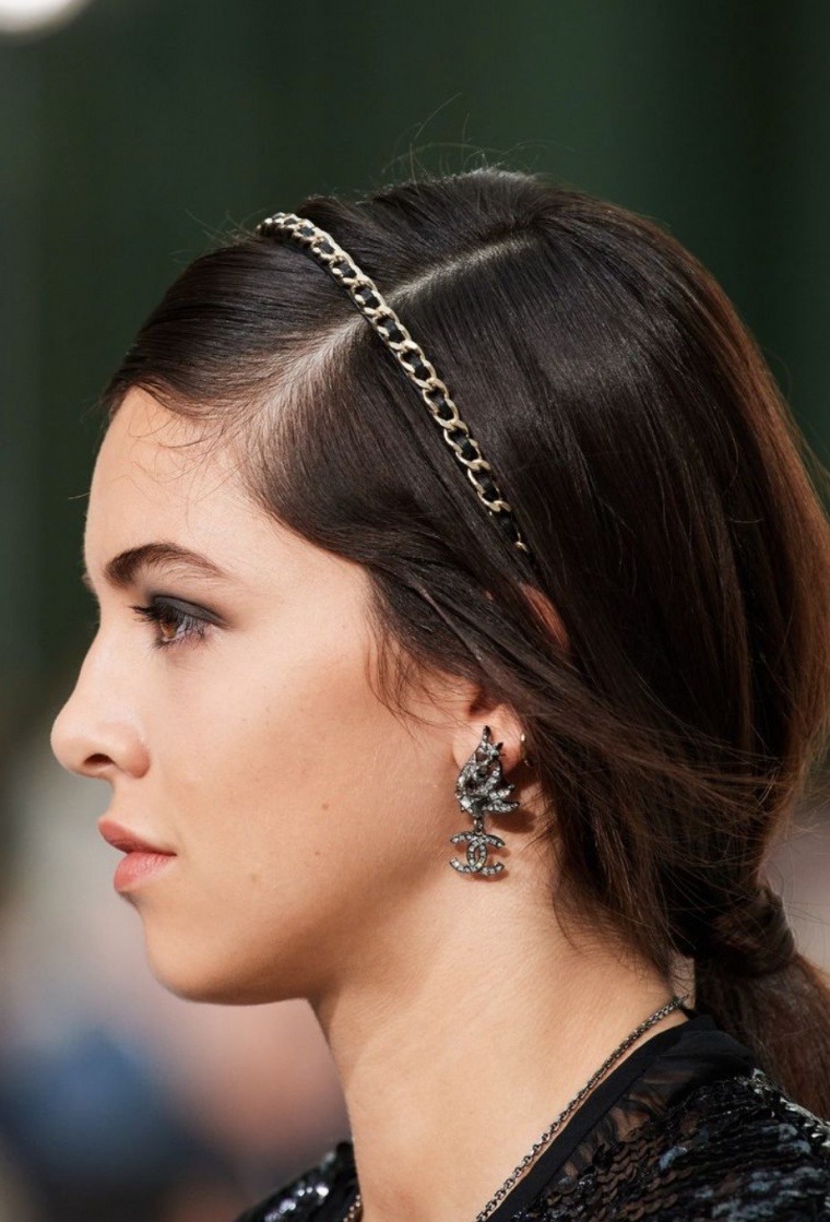 Dior включил в свою коллекцию узкий ободок, украшенный жемчугом, Chanel – фирменную цепочку, David Koma – зигзагообразную пружинку, а Max Mara подбирали обруч в тон каждого наряда. Аксессуары прекрасно дополняли любые прически!